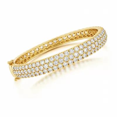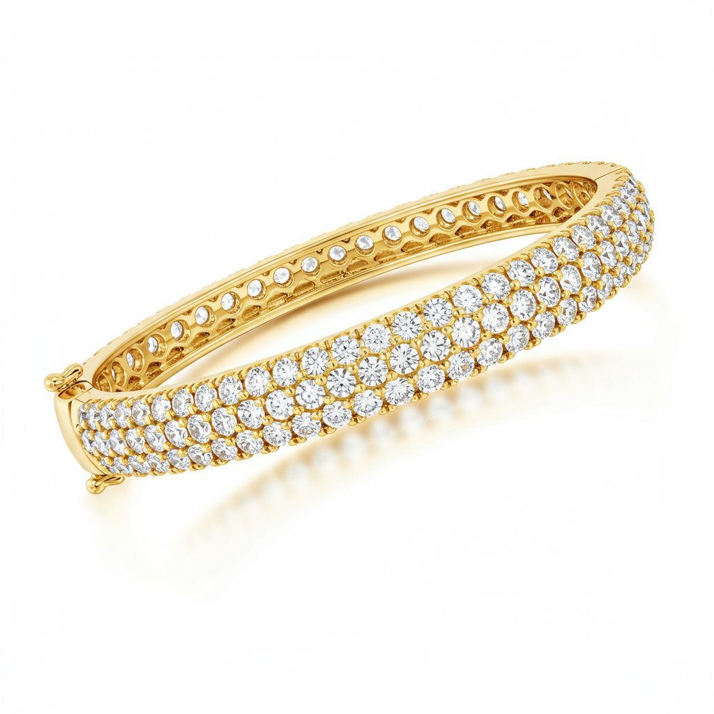 This stunning bangle bracelet embodies modern elegance, expertly crafted in radiant 18KT yellow gold. A continuous line of brilliant VVS diamonds is meticulously pave-set, offering exceptional sparkle from every angle. Its robust yet refined structure ensures comfortable, secure wear for daily luxury or special occasions. This piece serves as a timeless staple, designed to layer beautifully or shine brilliantly on its own.