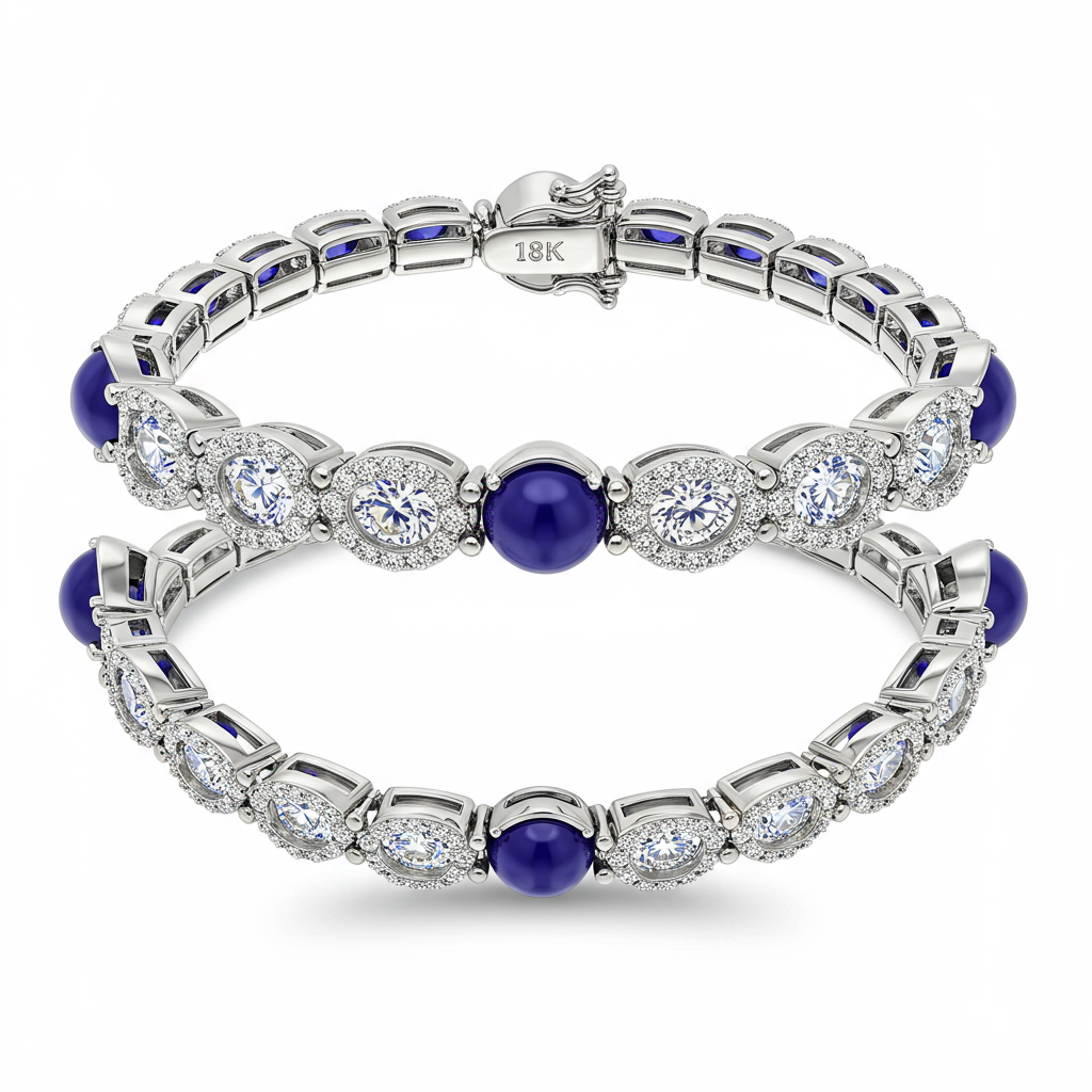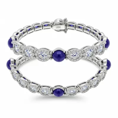 This exceptional beaded bracelet reimagines classic luxury with a modern, delicate sensibility. Featuring continuous lines of brilliant-cut VVS G diamonds set alongside deep blue sapphire spheres, this piece offers stunning contrast and movement. Crafted in luminous 18KT white gold, the fluid design drapes elegantly around the wrist, catching the light with every subtle motion. It is a versatile treasure, perfect for sophisticated layering or worn alone as a striking statement of refined taste.