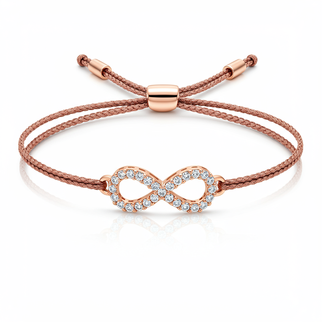 The Mother Daughter Diamond Bracelet Set symbolizes an unbreakable bond, crafted in glowing 18KT Rose Gold. Each bracelet features a delicate infinity charm adorned with VVS diamonds, reflecting the eternal connection between two hearts. Designed for everyday wear, the adjustable cord ensures a perfect fit for both mother and child. This sophisticated set serves as a timeless keepsake, celebrating enduring love and cherished memories.