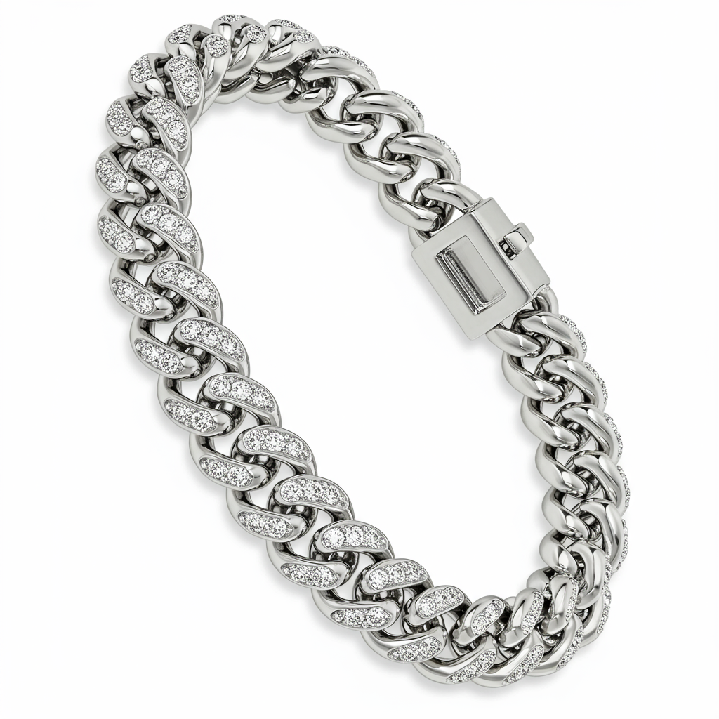This exceptional men's link bracelet embodies robust sophistication and modern luxury. Crafted in substantial 18KT white gold, the articulated links are meticulously micro-pave set with brilliant VVS diamonds, creating continuous, understated brilliance. Designed for the discerning gentleman, its solid construction ensures both supreme comfort and enduring style. A concealed box clasp provides a seamless, secure finish, making this piece a powerful statement of success.