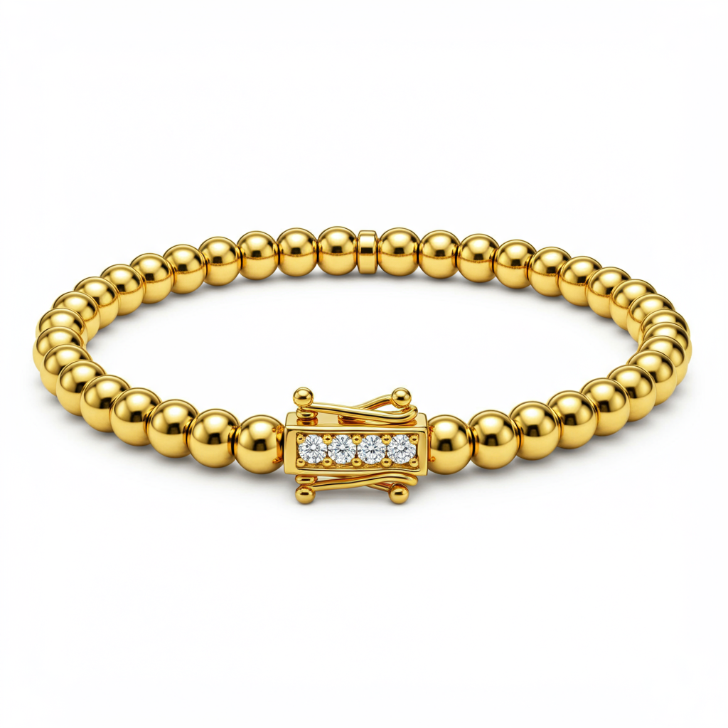 The Gold Bead Bracelet is a masterpiece of minimalist luxury, featuring perfectly polished 18KT yellow gold spheres strung on a durable, flexible chain. This timeless piece offers sophisticated texture and remarkable shine, making it an essential accessory for both daily wear and elegant occasions. Designed for comfort, it drapes flawlessly around the wrist, catching the light with every movement. Its simple yet powerful design embodies modern elegance and enduring style.