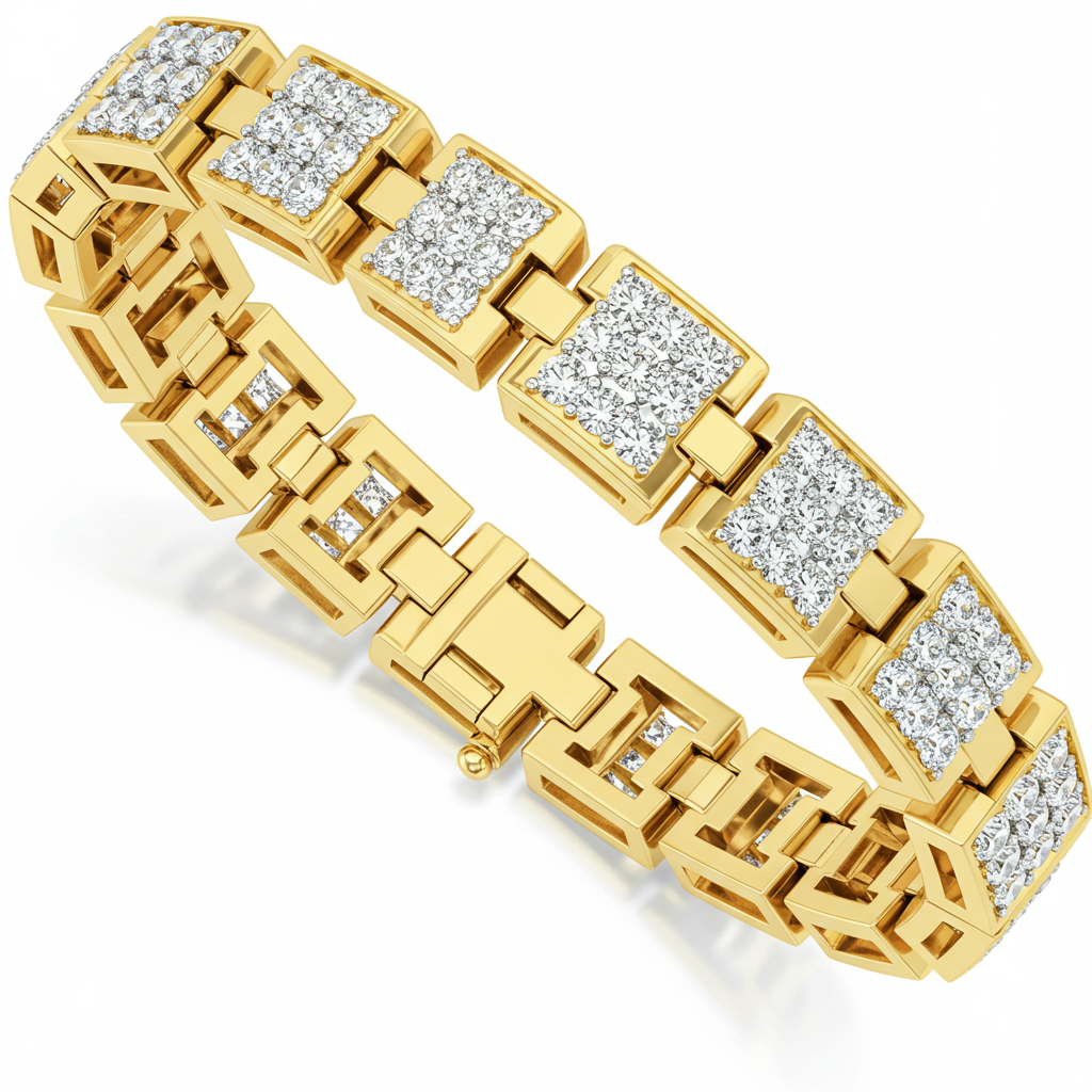 The Italian Charm Bracelet captures timeless elegance through its versatile, modular design. Crafted in luminous 18KT yellow gold, this piece features numerous interlocking links, each meticulously set with brilliant VVS diamonds in a secure pave style. Perfect for personalization and stacking, it offers a sophisticated way to tell your unique story. This bracelet provides both versatility and unmatched brilliance, making it the ideal choice for everyday luxury.