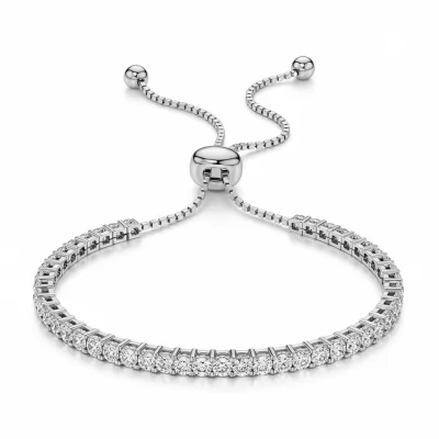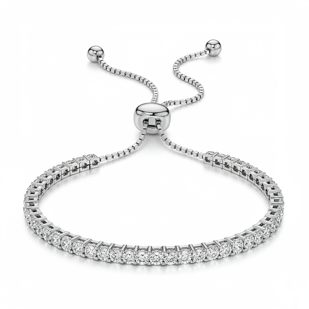 The Adjustable Diamond Tennis Bracelet offers versatile elegance, perfectly adapting to any wrist size with its innovative sizing mechanism. Crafted in brilliant 18KT white gold, this piece features 2.50 carats of meticulously set VVS round diamonds, creating an unbroken circle of fire and brilliance. Its timeless design makes it ideal for daily wear or layering, transitioning effortlessly from casual daylight to glamorous evening events. This bracelet is the quintessential modern luxury staple, combining high functionality with unparalleled sparkle.