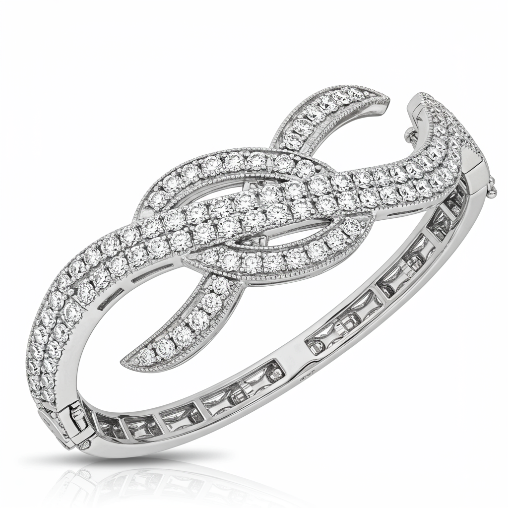 The Kandi Diamond Line Bracelet redefines everyday luxury, crafted meticulously in luminous 18KT white gold. This fluid design showcases 5.50 carats of perfectly matched VVS round brilliant diamonds, individually secured in flawless prong settings to maximize light return. Offering a seamless drape around the wrist, its elegant symmetry ensures enduring sophistication suitable for both formal events and daily wear. An invisible safety clasp secures this breathtaking symbol of eternal grace and brilliance.
