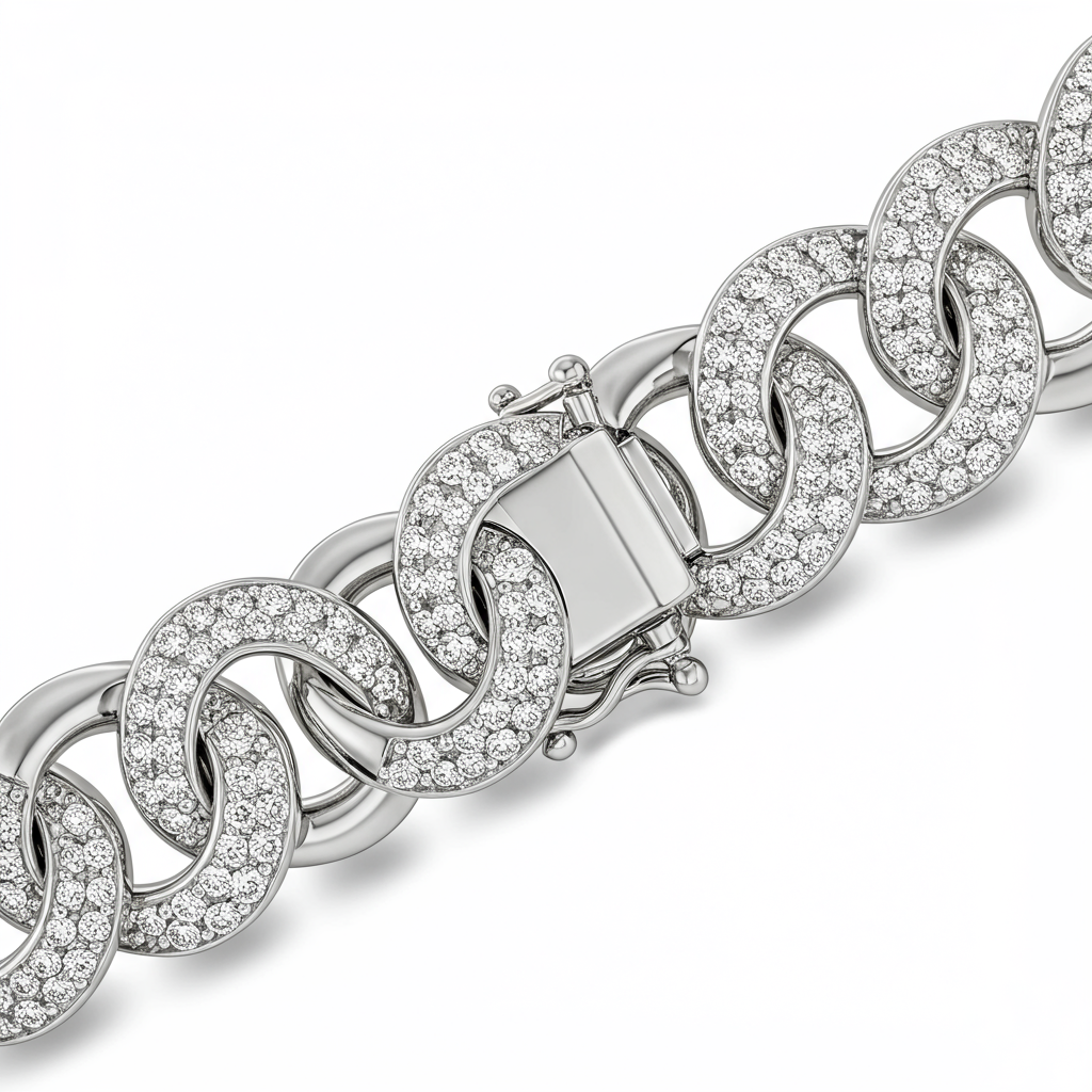 The Candy Bracelet is a whimsical yet sophisticated masterpiece, featuring alternating links of brilliant diamonds and high-polished 18KT white gold. Inspired by sweet indulgence, this piece offers a delightful movement and stunning sparkle on the wrist. Each VVS diamond is meticulously set to maximize light return, ensuring unparalleled brilliance and fire. This statement bracelet transitions flawlessly from daytime elegance to evening glamour, defining modern luxury.