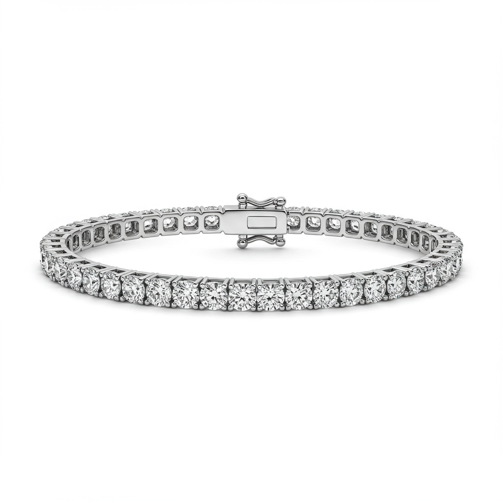 This exquisite tennis bracelet embodies timeless elegance, set in luminous 18KT white gold. A continuous line of 2.75 carats of perfectly matched round brilliant VVS diamonds creates an unparalleled display of fire and brilliance. Secured by a hidden box clasp with dual safety features, this piece offers both supreme luxury and dependable security. It is the ultimate statement accessory, perfect for celebrating milestones or adding daily glamour to any ensemble.