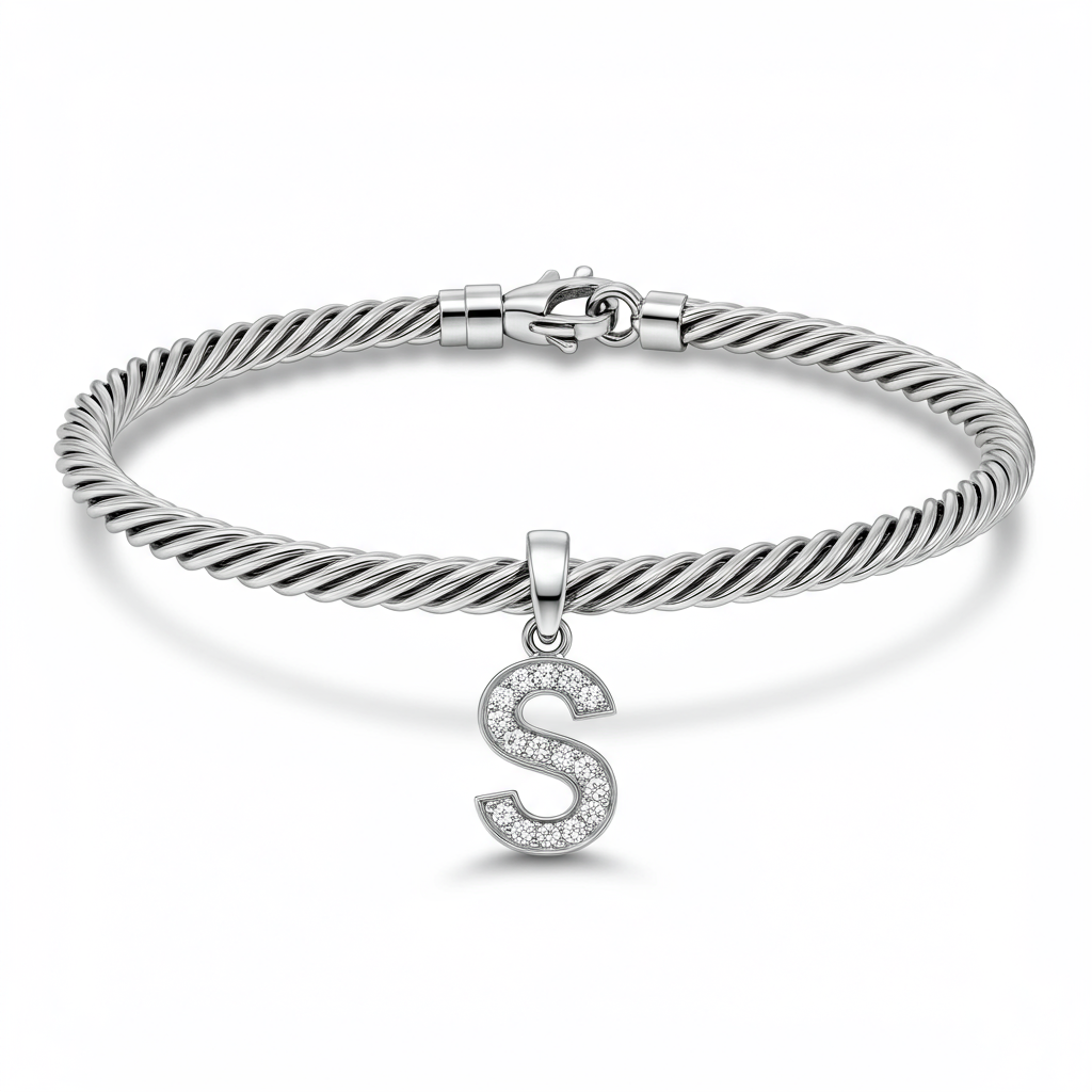 The Initial Bracelet is a highly personal piece crafted in radiant 18KT white gold. A delicate cable chain suspends a meticulously sculpted charm, pavé-set with brilliant VVS diamonds. This elegant statement offers subtle sophistication, allowing the wearer to carry a meaningful emblem close to them always. It is the perfect blend of modern luxury and timeless sentimentality, designed for everyday wear.