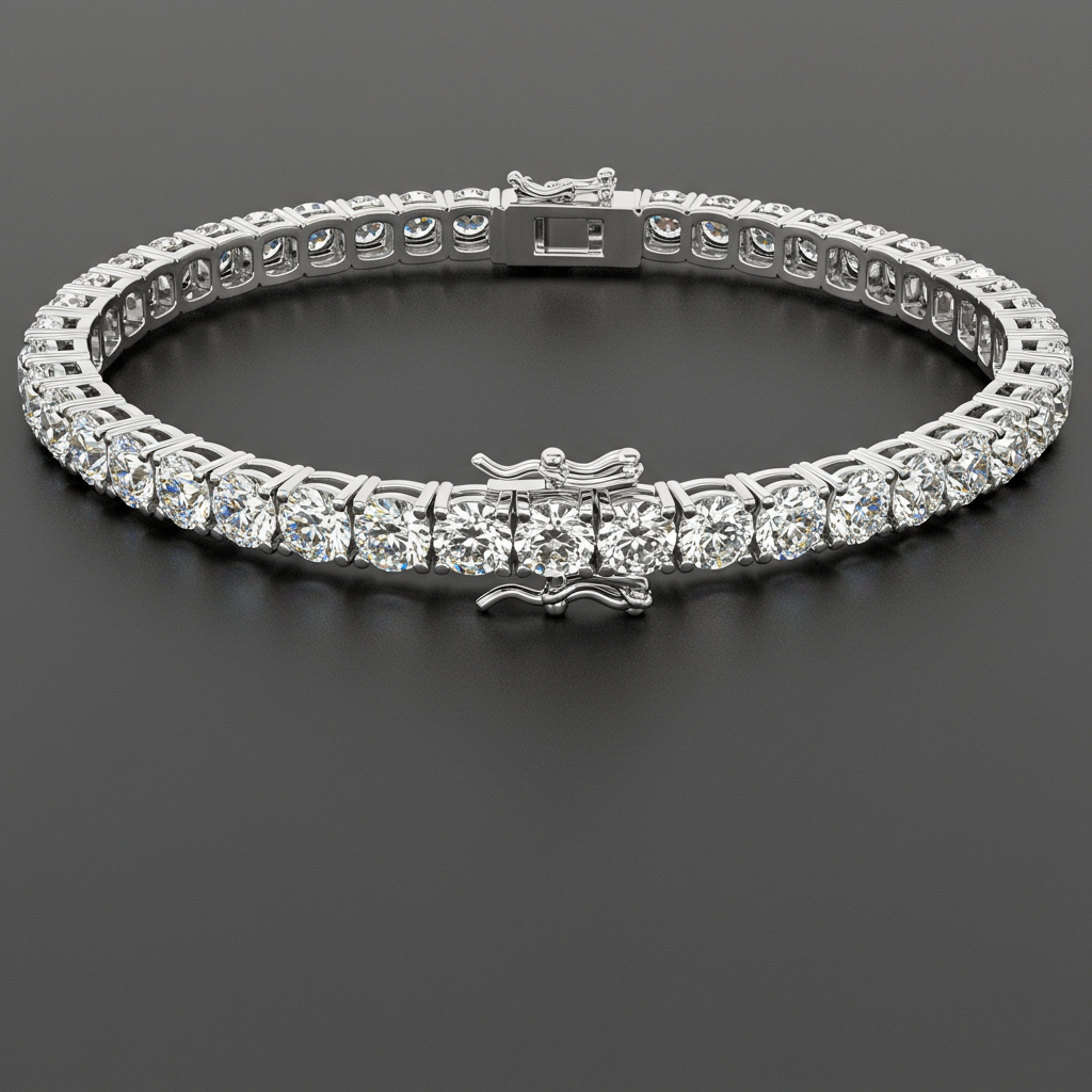 Experience timeless elegance with this iconic Cartier-inspired tennis bracelet. Crafted in luminous 18KT white gold, it features a continuous line of impeccably matched round brilliant diamonds. The seamless setting ensures maximum light performance, creating dazzling sparkle with every movement. This bracelet is secured with a secure locking clasp, symbolizing eternal sophistication and luxury.