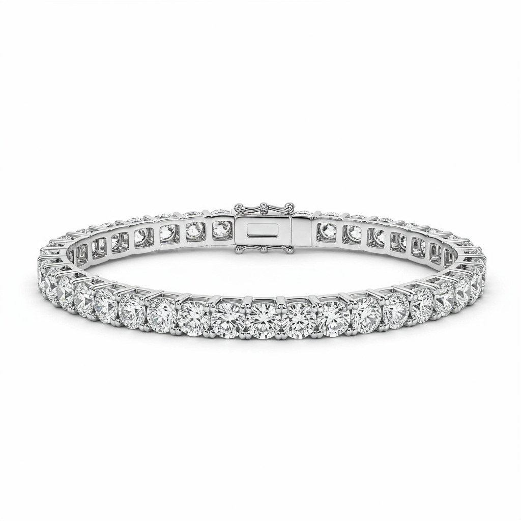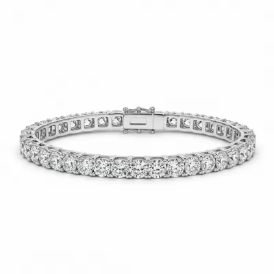 This exquisite diamond line bracelet redefines classic luxury, meticulously crafted in radiant 18KT white gold. Featuring a continuous stream of brilliant VVS G-color round diamonds, each stone is perfectly calibrated to maximize sparkle and fire. The secure, flexible design ensures both comfort and timeless elegance on the wrist. This piece serves as the ultimate statement of sophisticated grace, ideal for both daily wear and grand evening events.