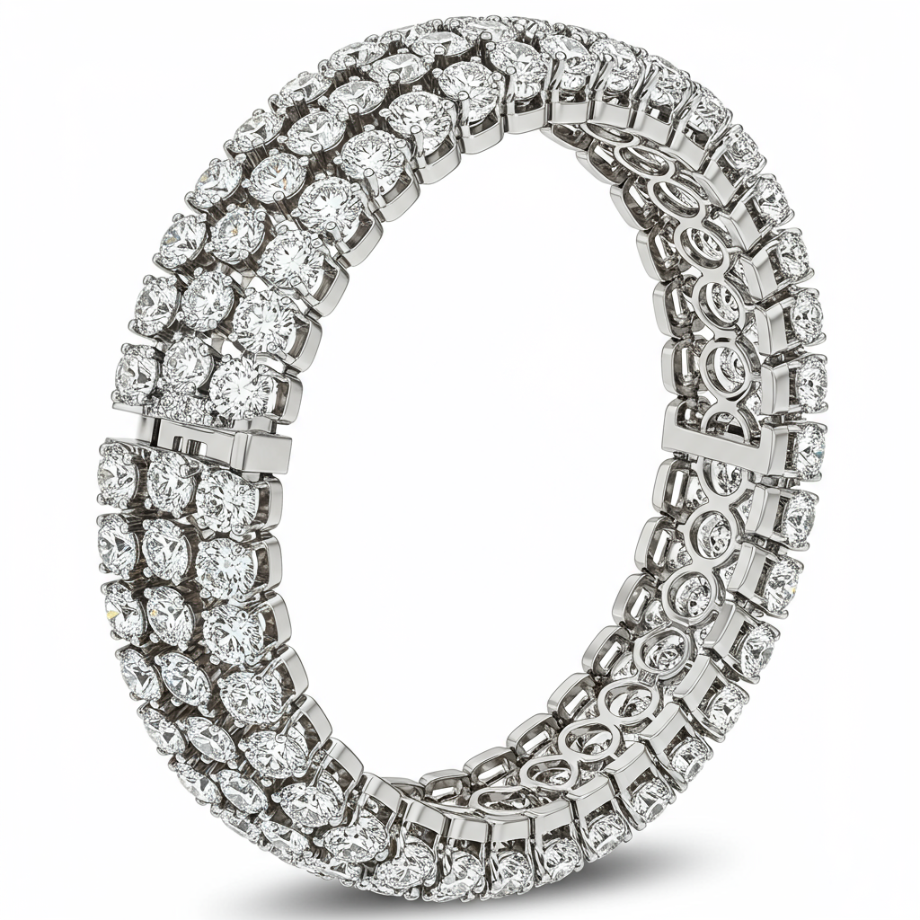 The Elastic Band Bracelet redefines modern luxury with its innovative, flexible design, ensuring both comfort and exceptional sparkle. Crafted in sleek 18KT white gold, this piece features an array of VVS round brilliant diamonds meticulously set to maximize light return. Its unique construction allows for effortless wearability, adapting perfectly to the wrist. This bracelet is an essential statement piece, blending high fashion aesthetics with supreme functional elegance.