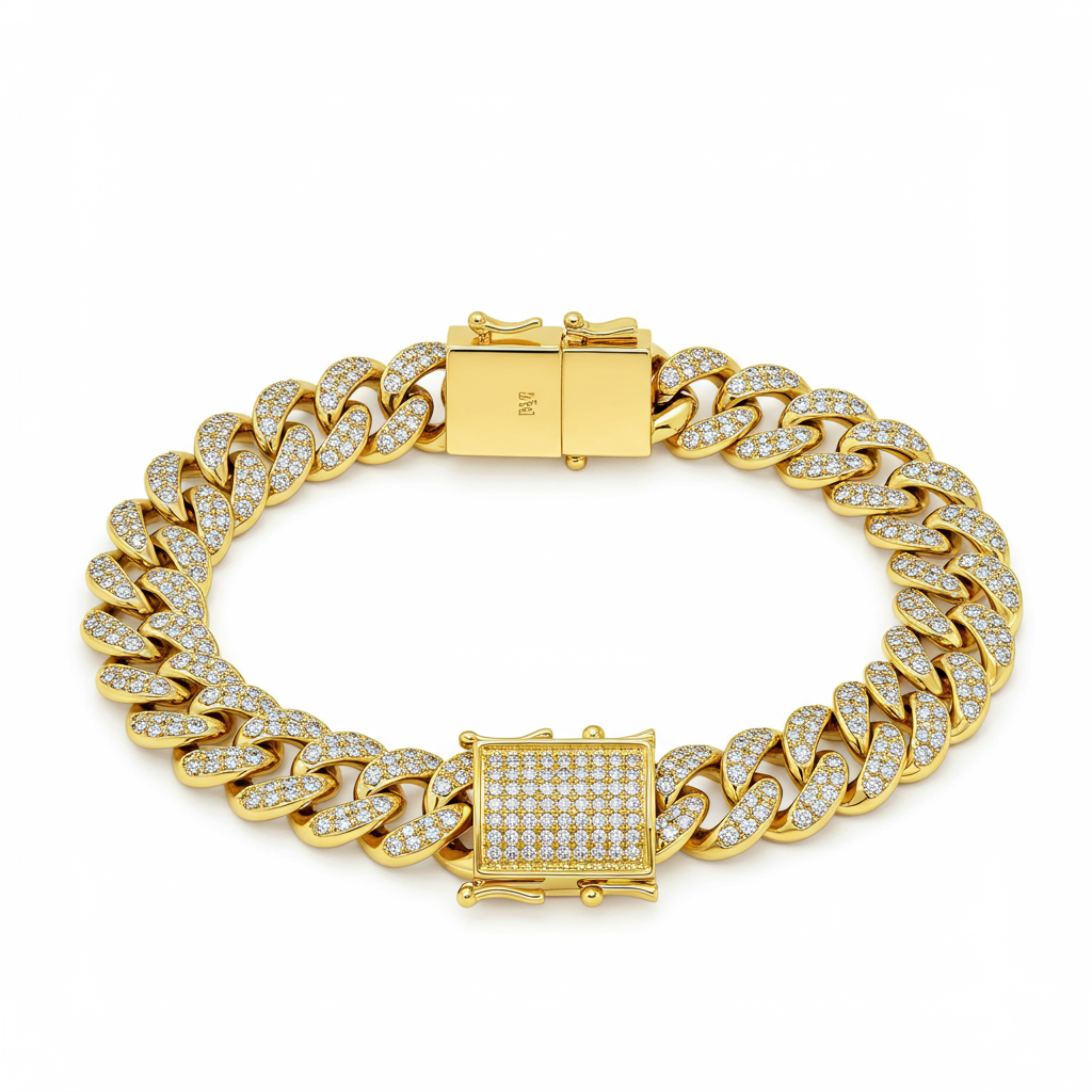 This extraordinary Cuban Link Bracelet is the pinnacle of opulent craftsmanship, meticulously constructed from solid 18KT Yellow Gold. Each substantial link is completely paved with brilliant round diamonds, offering unparalleled sparkle and depth. The substantial weight and flawless VVS clarity stones confirm its status as a luxurious statement piece. Secured by a heavy-duty invisible box clasp, this bracelet provides both comfort and undeniable presence for the discerning wearer.