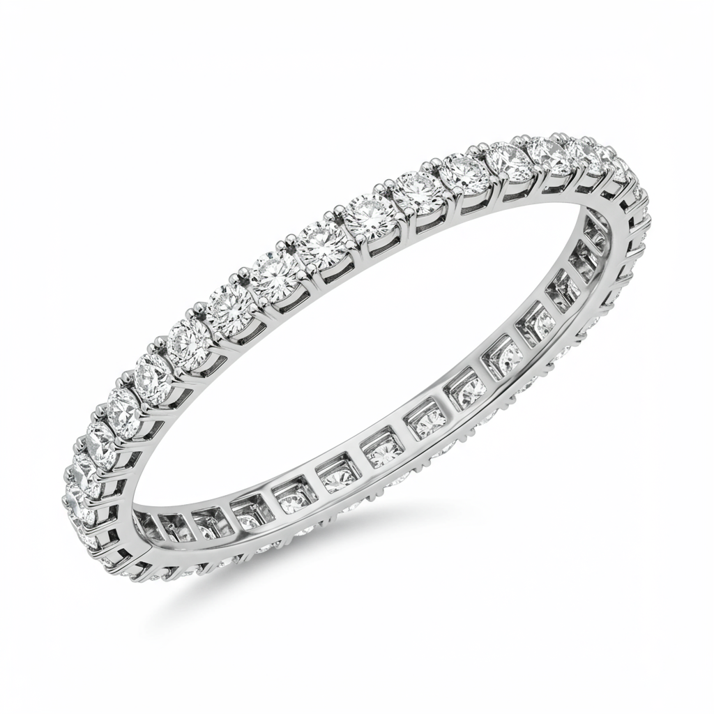 The Forever Bracelet embodies timeless elegance, meticulously crafted in 18KT white gold. A continuous line of perfectly matched, brilliant-cut VVS diamonds encircles the wrist, symbolizing unending commitment and beauty. Each diamond is secured in a classic yet streamlined setting, maximizing light return and scintillation. This exquisite bangle offers a sophisticated statement piece, designed to be worn and cherished for generations.