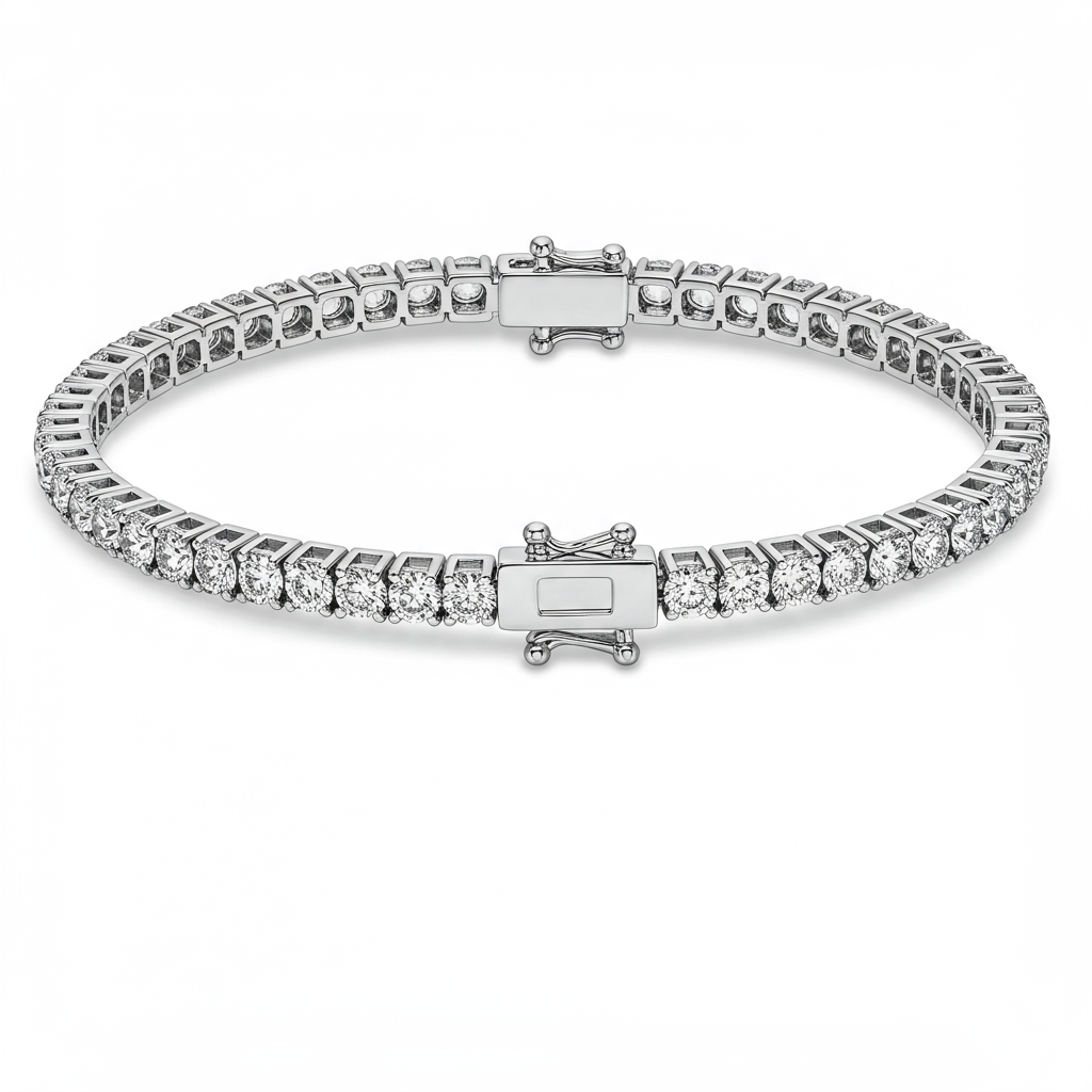 Experience unparalleled brilliance with this exquisite lab-grown diamond tennis bracelet, a timeless classic redefined for the modern ethical consumer. Each ethically sourced diamond is meticulously set in polished 18KT white gold, creating a continuous line of fiery sparkle that wraps gracefully around the wrist. The flexible setting ensures comfortable wear, while the secure clasp guarantees longevity and peace of mind. This bracelet is the ultimate statement of luxury, perfect for commemorating special milestones or elevating everyday style.