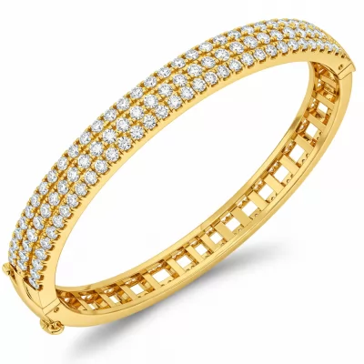 This iconic 18KT yellow gold bangle captures timeless elegance and contemporary flair, reminiscent of legendary design houses. Featuring a sleek, highly polished surface, the bracelet is subtly set with high-brilliance VVS diamonds along its circumference. The precise engineering ensures a secure and comfortable fit, making it a perfect statement piece for daily wear or formal occasions. This luxurious jewel exemplifies sophisticated craftsmanship and enduring design legacy.