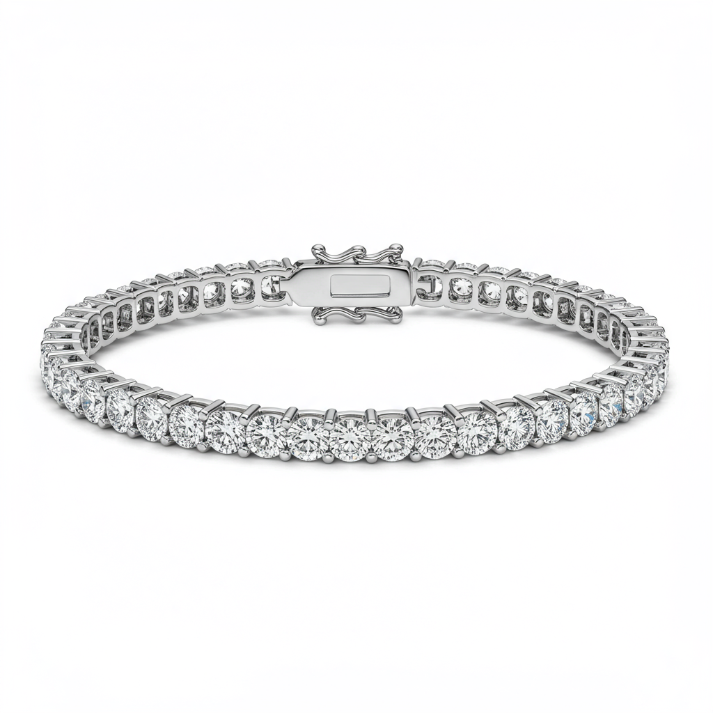 This exquisite tennis bracelet embodies timeless sophistication, meticulously crafted in radiant 18KT white gold. It features a continuous line of brilliant-cut VVS diamonds, chosen specifically for their exceptional clarity and fire. The delicate yet secure setting allows maximum light penetration, ensuring dazzling sparkle with every movement. Perfect for elevating both daily attire and formal evening wear, this piece is an investment in enduring luxury.