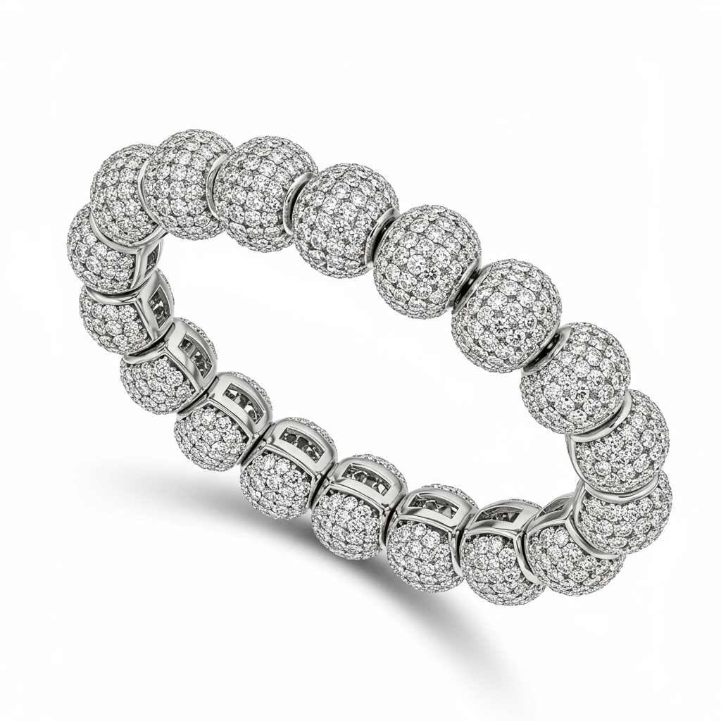This exquisite bead bracelet seamlessly blends classic structure with dazzling modernity. Crafted in radiant 18KT white gold, each carefully placed spherical bead is micro-pave set with brilliant round diamonds. The flexible design ensures unparalleled comfort and a fluid drape on the wrist, making it a masterpiece of fine craftsmanship. A true statement piece, this bracelet captures and reflects light from every angle, making it ideal for both grand events and daily luxury.