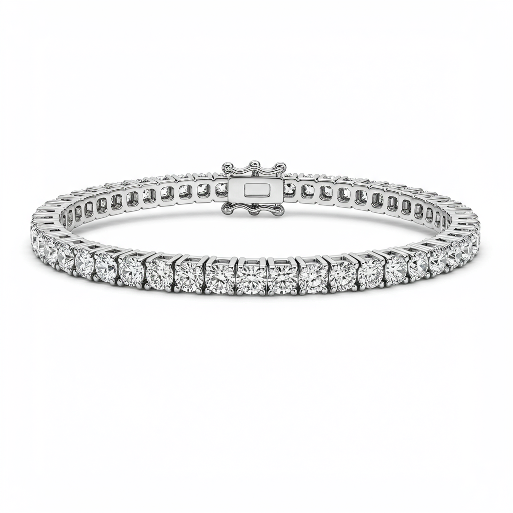 Experience timeless elegance with this exquisite Sterling Silver tennis bracelet. Each link is meticulously crafted, showcasing a continuous stream of brilliant, high-clarity diamonds. The bright white silver complements the fire of the stones, creating a dazzling display of light. Secured by a polished box clasp with safety catches, this bracelet transitions effortlessly from daywear to evening glamour, making it a versatile cornerstone of any fine jewelry collection.