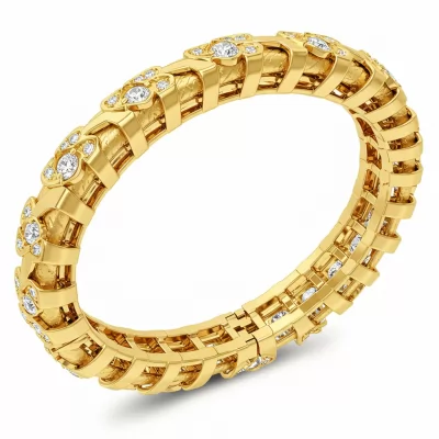 The 'Cartier style' Men's Luxury Bracelet embodies contemporary strength and refined elegance. Crafted in substantial 18KT yellow gold, its signature screw motif design offers a bold yet sophisticated statement. This architectural piece is finished with a high-polish shine, ensuring it catches the light with every movement. Adorned with brilliant accent diamonds, it serves as the ultimate modern accessory for the discerning gentleman, combining iconic design principles with unparalleled craftsmanship.
