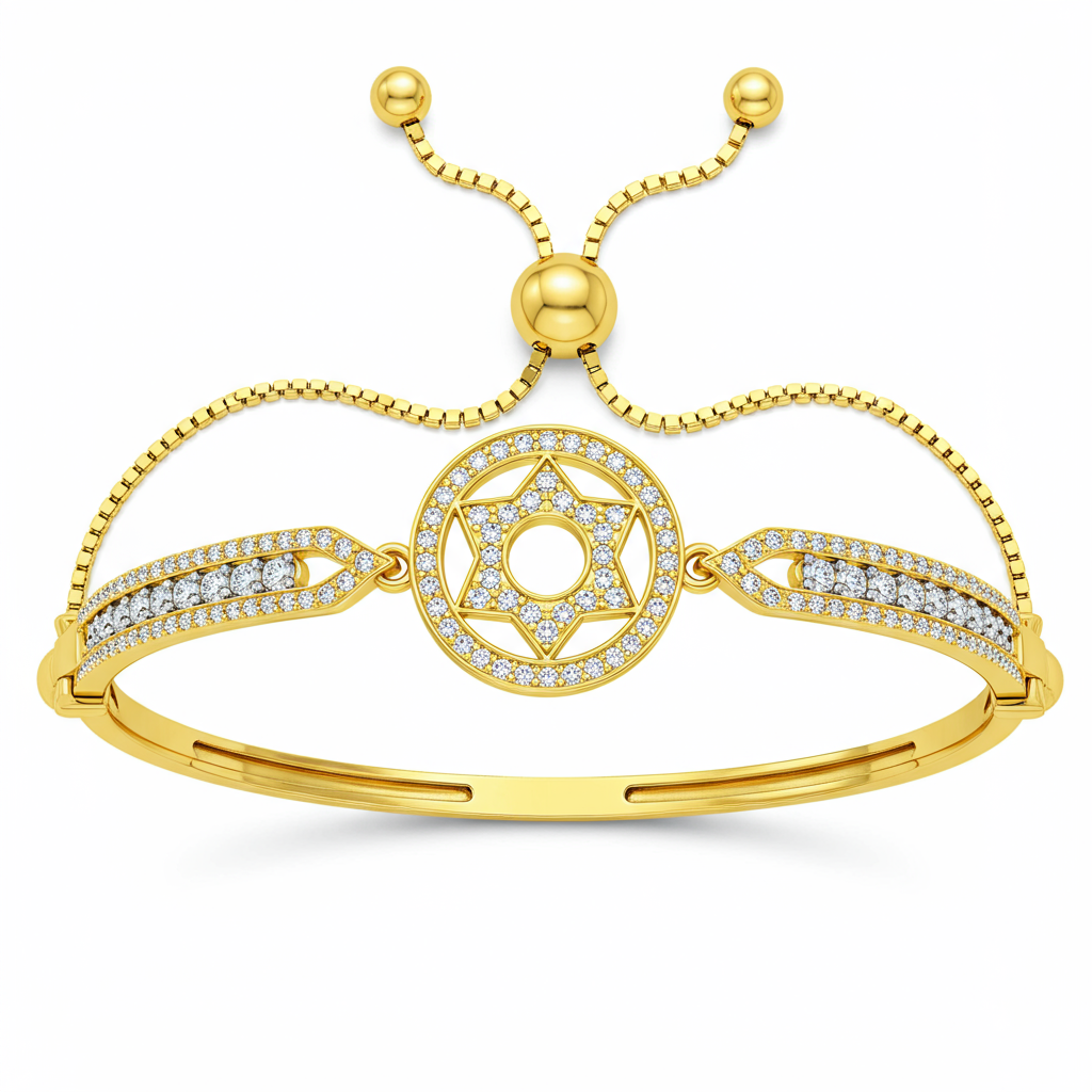 This Kabbalah bracelet embodies protection and spirituality, rendered in lustrous 18KT yellow gold. It features a central charm often associated with traditional symbolism, subtly accented with brilliant-cut diamonds. The design utilizes a delicate yet durable chain complemented by an adjustable sliding mechanism for a perfect, customized fit on any wrist. This piece serves as both a meaningful talisman and an elegant daily accessory, blending profound meaning with luxurious craftsmanship.