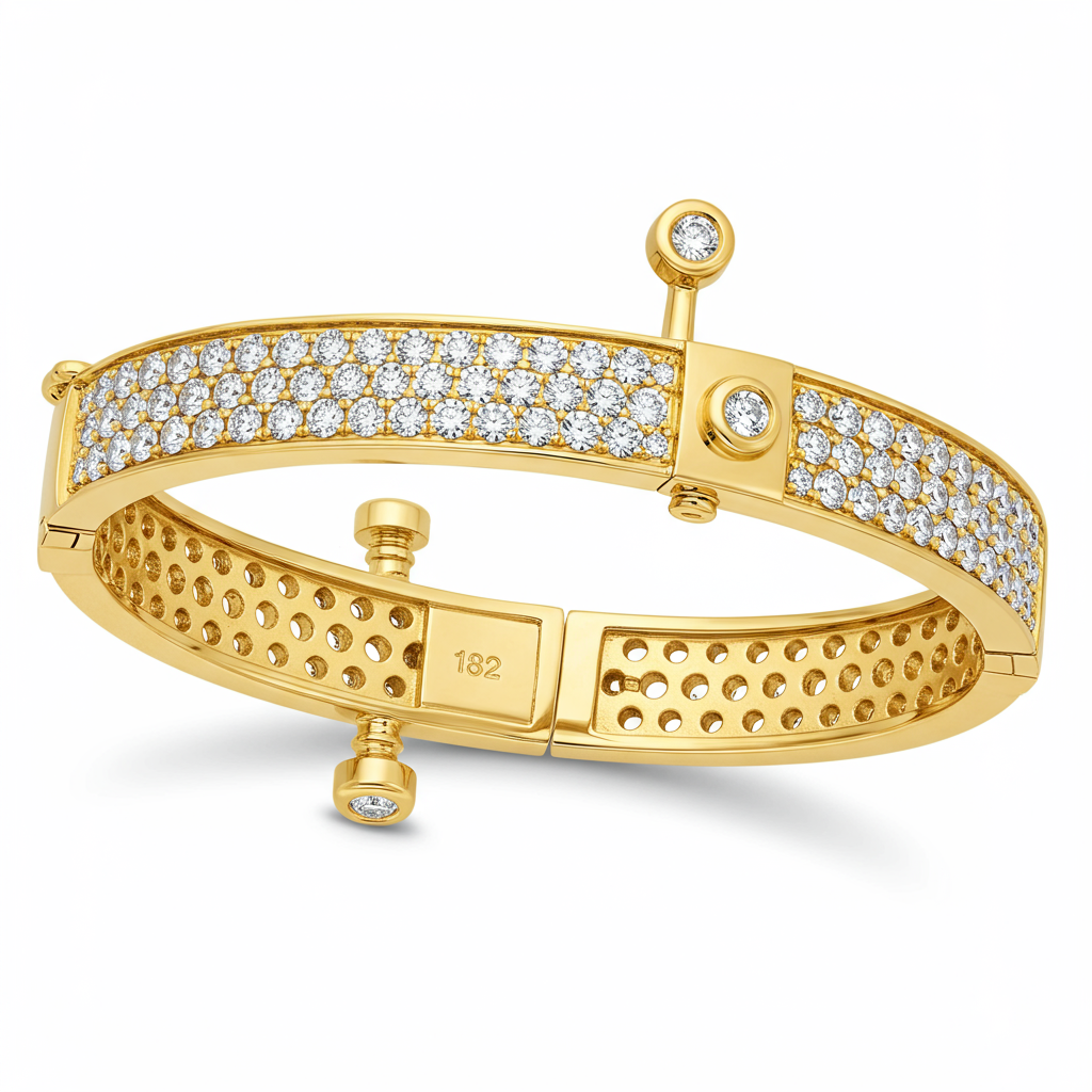 This iconic diamond bracelet captures the essence of timeless romance and modern luxury. Crafted in radiant 18KT yellow gold, its signature screw motif is meticulously punctuated by 50 brilliant-cut VVS diamonds. This piece represents an enduring bond, offering both significant presence and sublime elegance. It is designed for daily wear or as the ultimate statement accessory for the discerning collector. Its flawless construction ensures lasting quality.