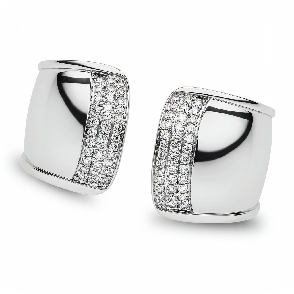 This exquisite Silver Cuff Bracelet merges traditional craftsmanship with modern brilliance. Crafted from highly polished sterling silver, the wide band showcases a dazzling array of micro-pave set diamonds across its prominent center channel. The ergonomic open design ensures both comfort and a secure fit for daily wear or evening occasions. This statement piece captures light flawlessly, defining sophisticated luxury and effortless elegance. It is an essential addition to any high-end jewelry collection.