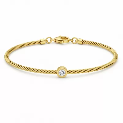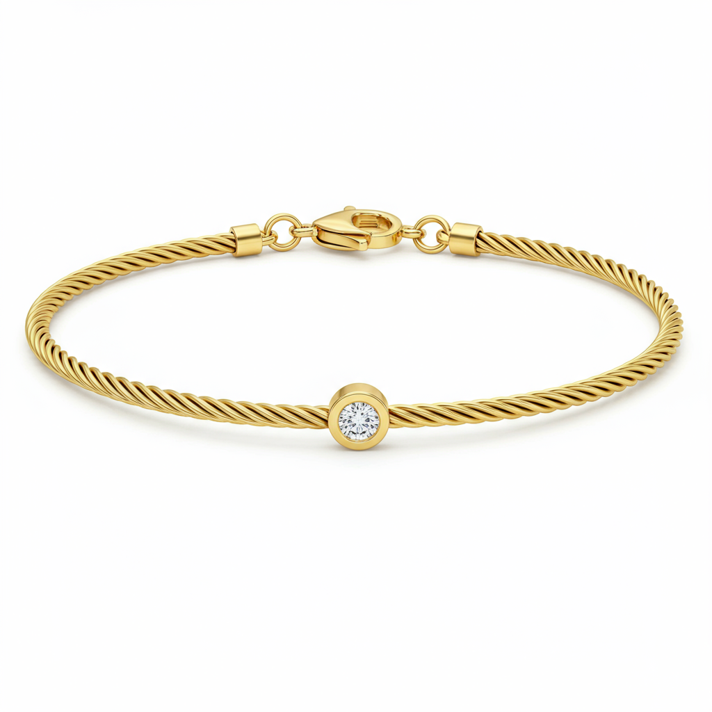 The Dainty Gold Bracelet is a masterpiece of minimalist elegance, crafted in lustrous 18KT yellow gold. It features a delicate cable chain accented by a single, brilliant-cut VVS diamond station, capturing light with every graceful movement. This subtle yet striking piece is perfect for daily wear or elegant layering with other fine jewelry collections. Its lightweight design ensures supreme comfort, making it an essential foundation piece for any curated wardrobe.