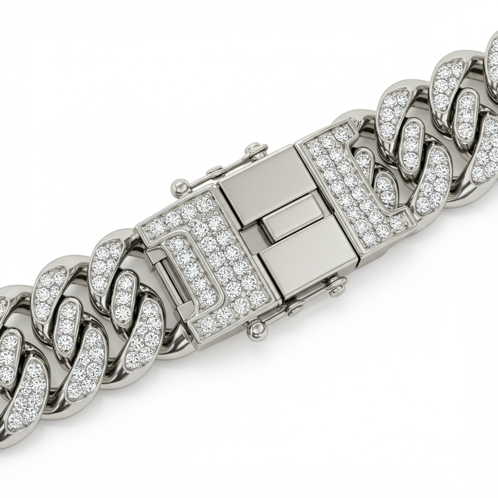 The Silver Men's Bracelet epitomizes modern masculinity and refined luxury. Crafted from premium Sterling Silver (925), this substantial heavy link design offers a commanding presence on the wrist. Subtle micro-pave VVS diamonds are meticulously set into the clasp mechanism, adding a hidden flash of brilliance. This powerful piece is finished with a robust, polished box clasp, ensuring both security and sophisticated style. It is the definitive accessory for the contemporary gentleman.