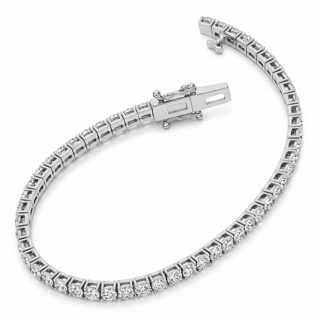 This exquisite tennis bracelet features a continuous line of brilliant round diamonds meticulously set in gleaming 18KT white gold. Each VVS clarity diamond is perfectly matched, maximizing light return and creating an unparalleled sparkle along the wrist. The secure double-safety clasp ensures comfortable and confident wear for any formal occasion. This timeless piece embodies classic elegance and modern luxury, making it an indispensable addition to any fine jewelry collection.