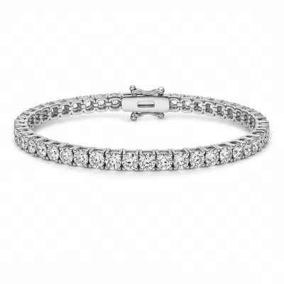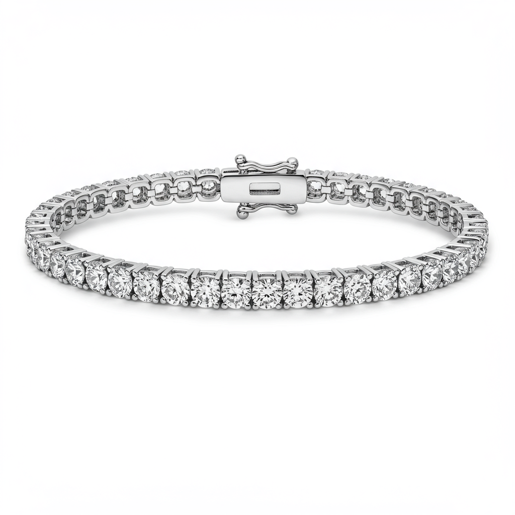 This elegant silver bracelet, crafted in luminous 18KT white gold, embodies timeless sophistication. Featuring a continuous line of perfectly matched round brilliant diamonds, each stone is meticulously secured in a four-prong setting for maximum sparkle. The design balances modern sleekness with classic luxury, making it the definitive statement piece for any formal occasion or daily elegance. This piece offers unparalleled brilliance and masterful craftsmanship, designed to last generations.