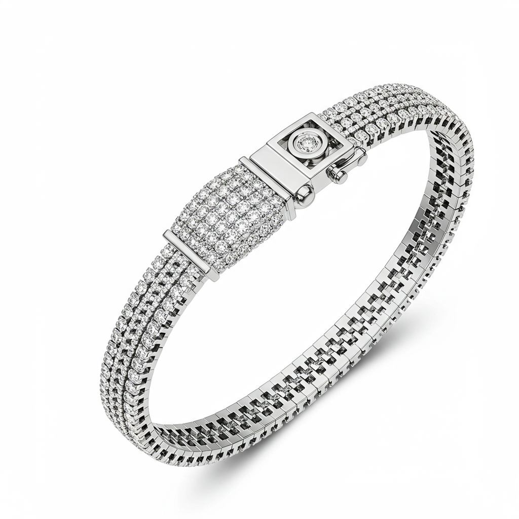 The Ambush Zip Tie Bracelet reimagines industrial utility into high fashion luxury. Crafted meticulously in high-polish 18KT white gold, this signature piece captures the playful, utilitarian aesthetic of a zip tie while elevating it with brilliant VVS pave diamond accents. The structure offers a smooth, adjustable fit, making it a comfortable yet undeniably bold statement for the contemporary wrist. This bracelet represents the perfect fusion of avant-garde design and flawless, high-carat jewelry craftsmanship.