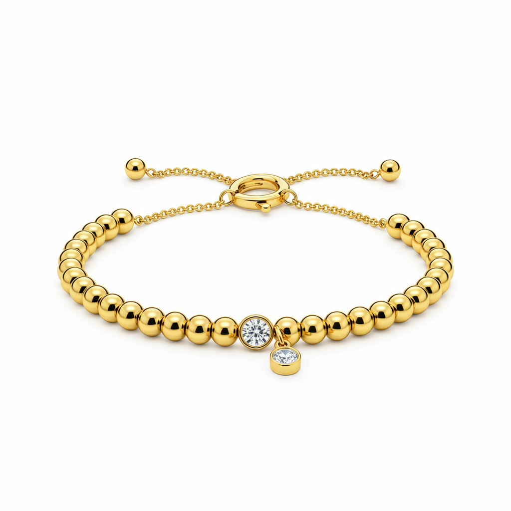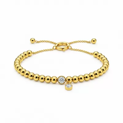 The enewton bracelet captures minimalist elegance with its delicate construction and effortless style. Crafted from luxurious 18KT yellow gold, this piece features perfectly polished gold beads interspersed along a fine chain, culminating in a sophisticated toggle clasp. A single, brilliant VVS diamond accent adds a subtle yet compelling flash of light, making this bracelet perfect for stacking or wearing as a signature everyday piece. This design embodies modern luxury and quiet refinement.