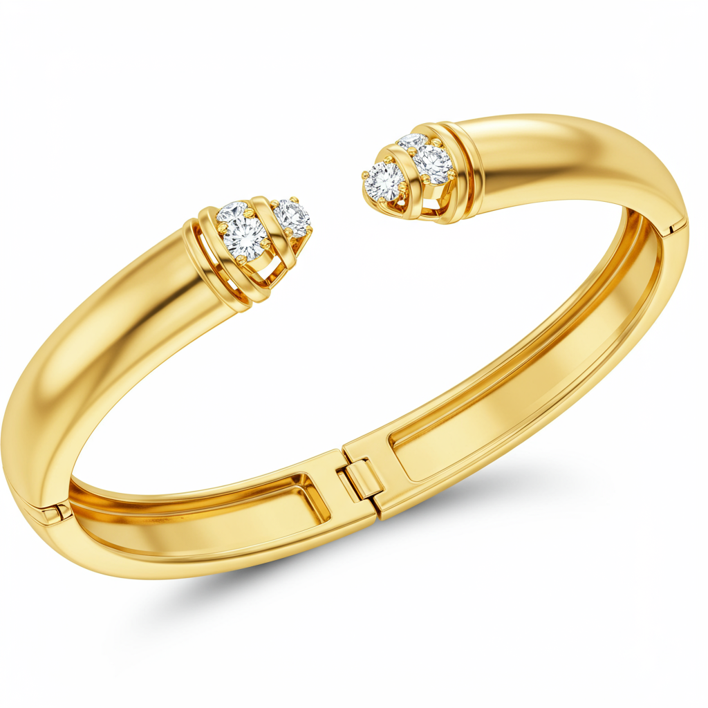 This exceptional 18KT yellow gold cuff bracelet epitomizes modern elegance and structural sophistication. Its bold, open design features a meticulously hand-polished finish, creating a dazzling display of lustrous metalwork. The cuff terminals are crowned with brilliant-cut VVS diamonds, set securely to capture maximum light and prestige. This piece transitions effortlessly from formal occasions to everyday luxury, offering a powerful statement of refined taste. It is an indispensable addition to any discerning collector's treasury.