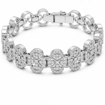 The Four Leaf Clover Bracelet embodies exceptional fortune and timeless elegance. Crafted in radiant 18KT white gold, this delicate piece features four intricately designed clover motifs, each meticulously micro-pave set with brilliant VVS diamonds. The lightweight cable chain ensures comfortable wear, making it perfect for daily glamour or special occasions. This iconic talisman is a sophisticated statement of luck and luxury, designed to be cherished for generations.