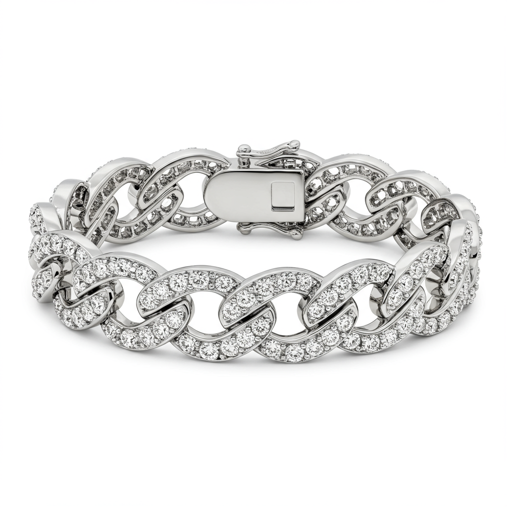 The Saint Laurent Bracelet captures the essence of Parisian chic with its refined structure and dazzling brilliance. Crafted in lustrous 18KT white gold, this piece features perfectly sculpted interlocking links. Each link is meticulously pave-set with VVS G-color diamonds, creating a continuous stream of light around the wrist. This statement bracelet offers effortless elegance, suitable for both formal events and elevated daily wear. It is the epitome of modern luxury design and high-end craftsmanship.