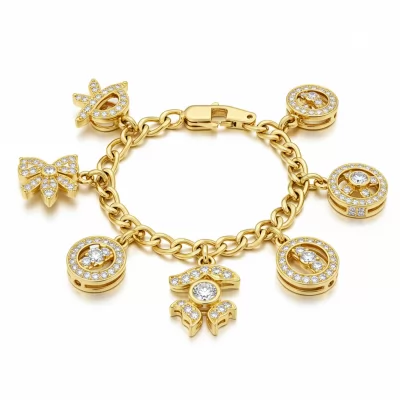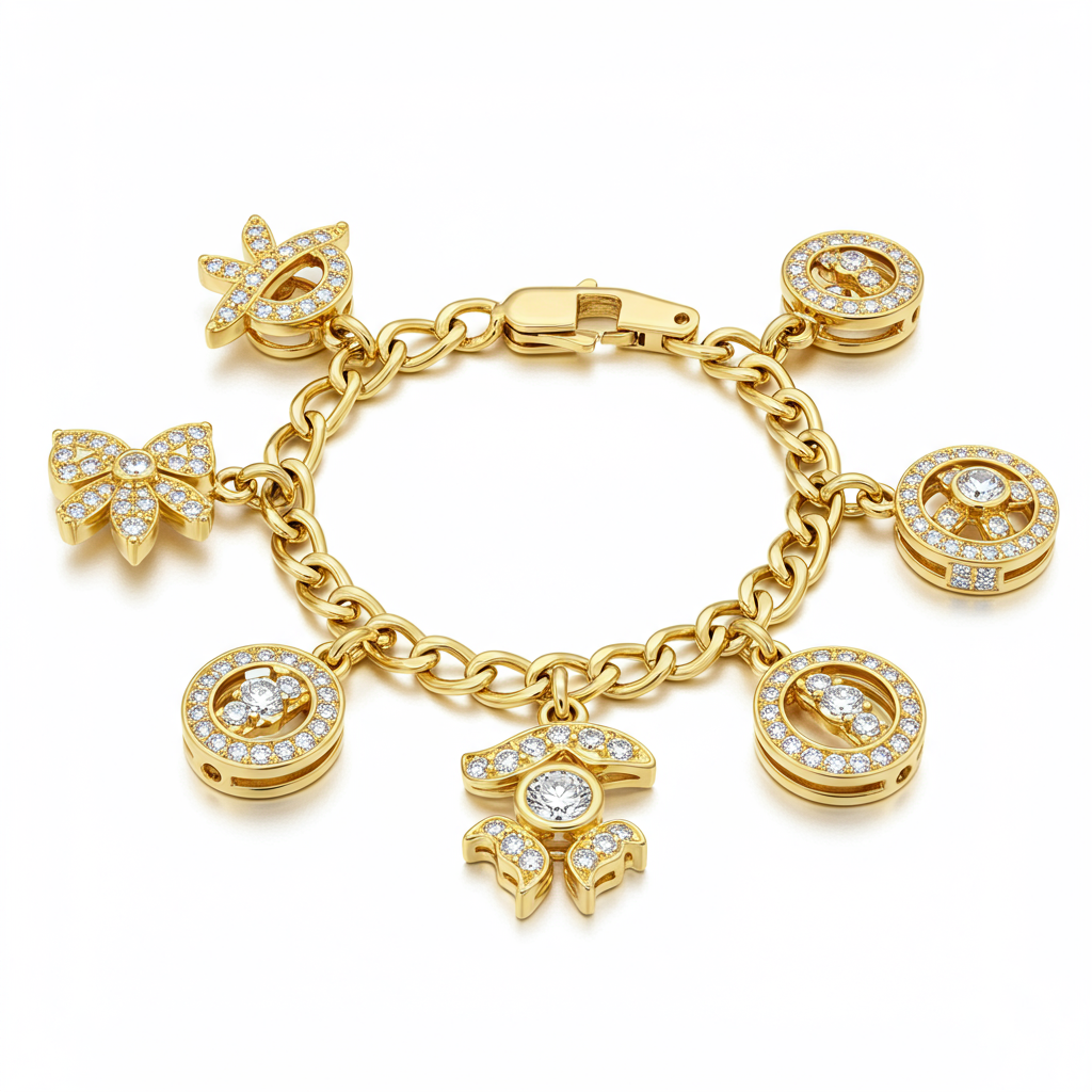 A personalized masterpiece featuring a delicate 18KT gold chain adorned with bespoke, meaningful charms. Each charm is meticulously hand-set with brilliant VVS diamonds, catching light with every movement. This piece offers unparalleled luxury and serves as an intimate wearable reflection of cherished memories and milestones. It is designed for enduring beauty and heirloom quality, celebrating your unique story. The secure clasp ensures comfort and confidence for daily wear.