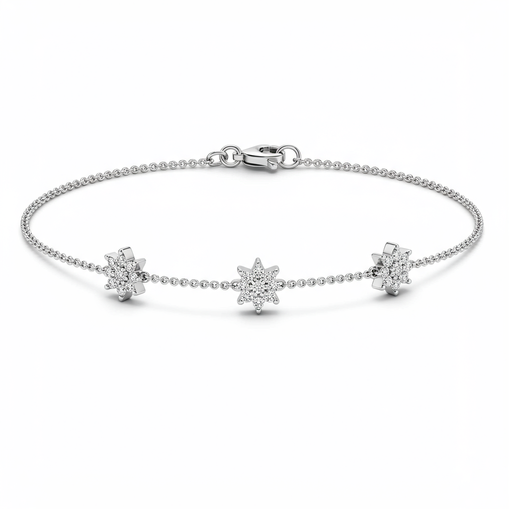This charming Kids Anklet is crafted in brilliant 18KT white gold, designed specifically for delicate wear. The fine cable chain is interspersed with three miniature, bezel-set diamond clusters, adding a subtle sparkle perfect for milestones and special occasions. Lightweight and secured with a durable clasp, this piece offers timeless elegance suitable for younger wearers. It serves as a beautiful keepsake, merging playful design with premium craftsmanship and enduring quality.