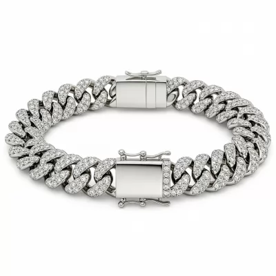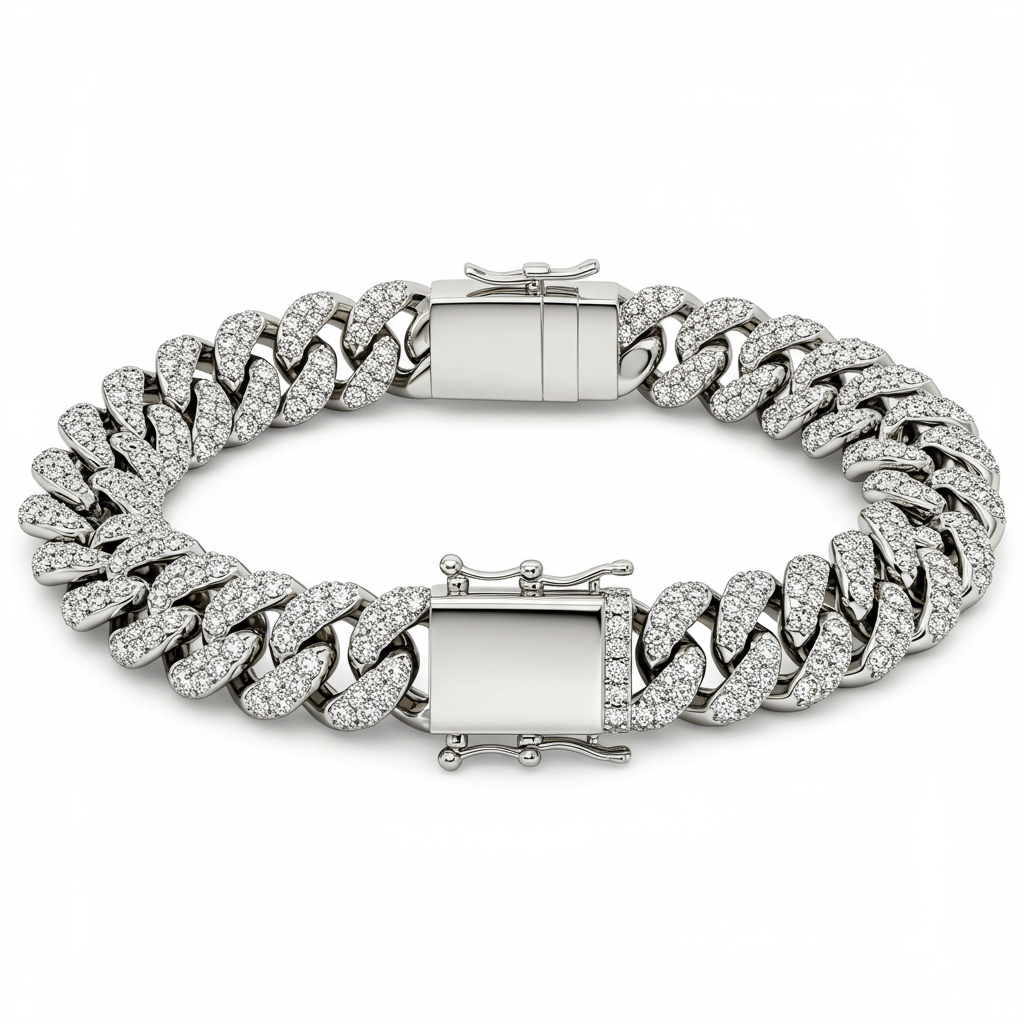 A luxurious piece that redefines modern wrist wear, the Pandora Cuban Link Bracelet features intricate geometry fully paved with brilliant diamonds. Crafted in radiant 18KT white gold, this substantial bracelet provides a bold yet sophisticated statement. Each meticulously set VVS diamond catches the light from every angle, creating a fluid ribbon of intense sparkle. The secure box clasp ensures comfortable, confident wear, making this an essential addition to any high-jewelry collection.