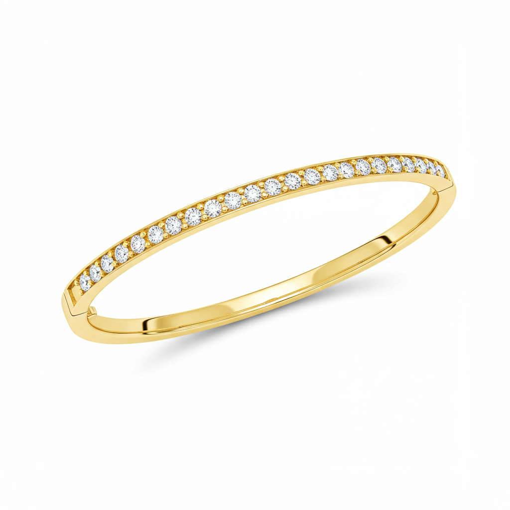 A perfect keepsake for the newest member of the family, this baby gold bracelet embodies purity and timeless elegance. Crafted in radiant 18KT yellow gold, the slender design is safe and comfortable for delicate skin. It features a subtle line of brilliant-cut VVS diamonds, adding a touch of sparkle to celebrate a special milestone. This heirloom-quality piece serves as a beautiful symbol of love and protection.