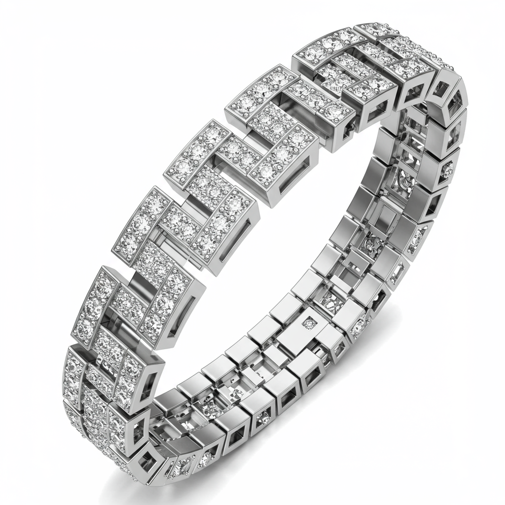 The Magnetic Bracelet is a feat of modern engineering and classic luxury, featuring a series of precision-crafted links rendered in luminous 18KT white gold. Its innovative hidden magnetic closure ensures a seamless and secure fit, embodying effortless sophistication. Each link is meticulously set with micro-pave diamonds of VVS clarity, catching the light with unmatched brilliance. This powerful statement piece blends cutting-edge design with timeless elegance, perfect for the discerning wearer. It is a striking accessory designed for both durability and dazzling presence.