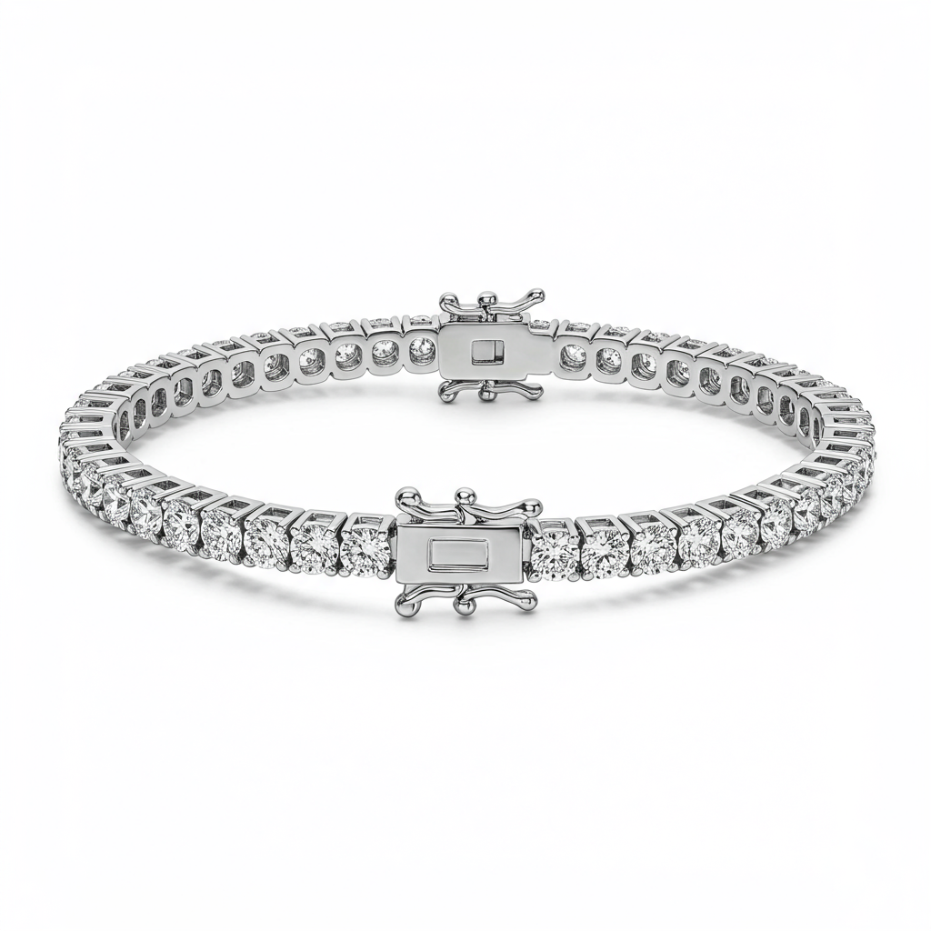 The 'bracelet making' Tennis Bracelet epitomizes timeless elegance and modern craftsmanship. Set in luxurious 18KT white gold, this piece features a continuous line of perfectly matched, brilliant round diamonds. Each stone is meticulously secured to maximize light return, creating a dazzling display of fire and brilliance. This bracelet serves as the perfect foundation for any high-end jewelry collection, offering versatile luxury for day or evening wear.