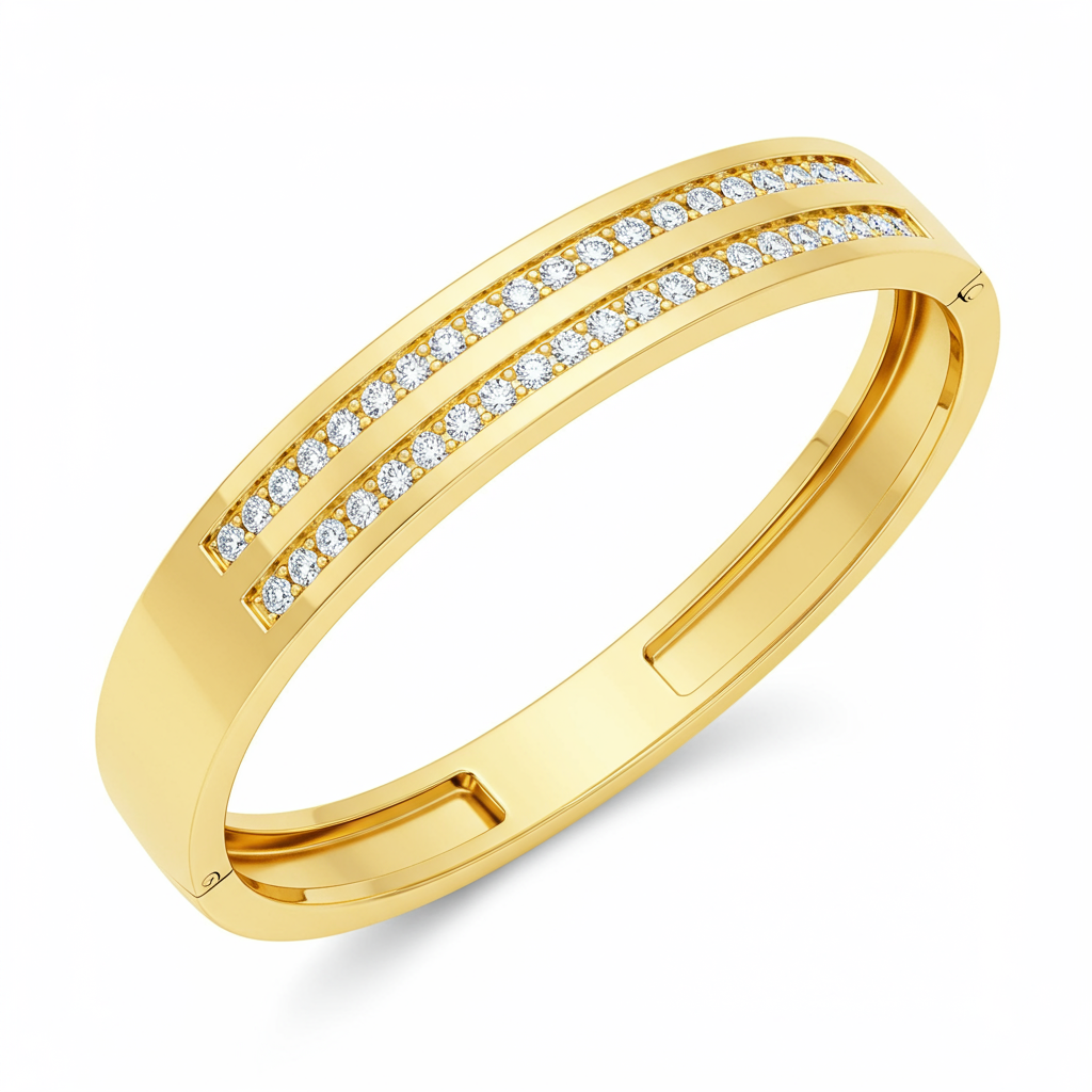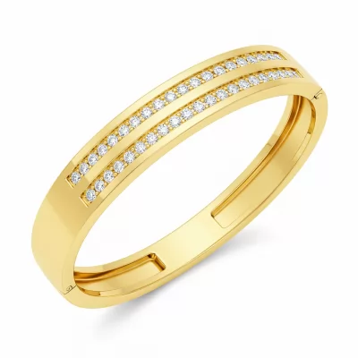 Celebrate everlasting bonds with this exquisite Friendship Band Bracelet. Crafted in polished 18KT yellow gold, this contemporary cuff features a bold, seamless design that symbolizes continuity and strength. A central stream of brilliant VVS round diamonds adds spectacular sparkle and luxury to this meaningful piece. Its ergonomic structure ensures comfort while delivering high-impact sophistication, making it an ideal piece for daily wear or special occasions.