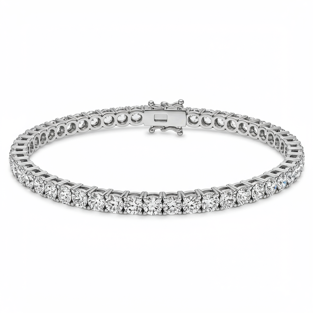 The Swarovski-inspired Tennis Bracelet captures the essence of radiant luxury through meticulous craftsmanship. This exquisite piece features a seamless line of 5.00 carats of brilliant round-cut diamonds set in durable 18KT white gold. Each VVS diamond is expertly prong-set, ensuring maximum light exposure and creating an uninterrupted cascade of sparkle along the wrist. This bracelet is the epitome of refined elegance, perfect for elevating any special occasion or adding sophistication to everyday attire.