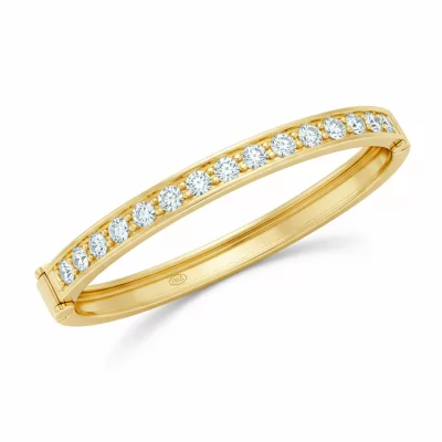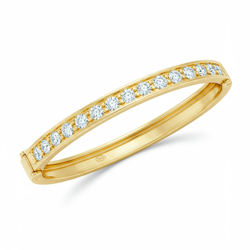 This exquisite Tiffany-inspired bangle bracelet captures timeless elegance, expertly crafted in luminous 18KT yellow gold. The iconic silhouette features a sleek, highly polished structure accented by a meticulously set row of VVS natural diamonds. Its secure, hinged clasp ensures comfortable, all-day wear while radiating sophisticated brilliance across the wrist. This piece is a definitive statement of luxury, perfect for the discerning jewelry collector seeking enduring style.