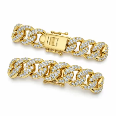 The 'womens gold bracelets' collection presents the epitome of modern luxury, featuring articulated 18KT yellow gold links. Each segment is meticulously set with brilliant VVS round diamonds, creating a continuous stream of light. This exquisite piece offers a flawless drape and superior comfort, secured by an elegant hidden clasp. It is the perfect signature accessory for timeless elegance and high sophistication.