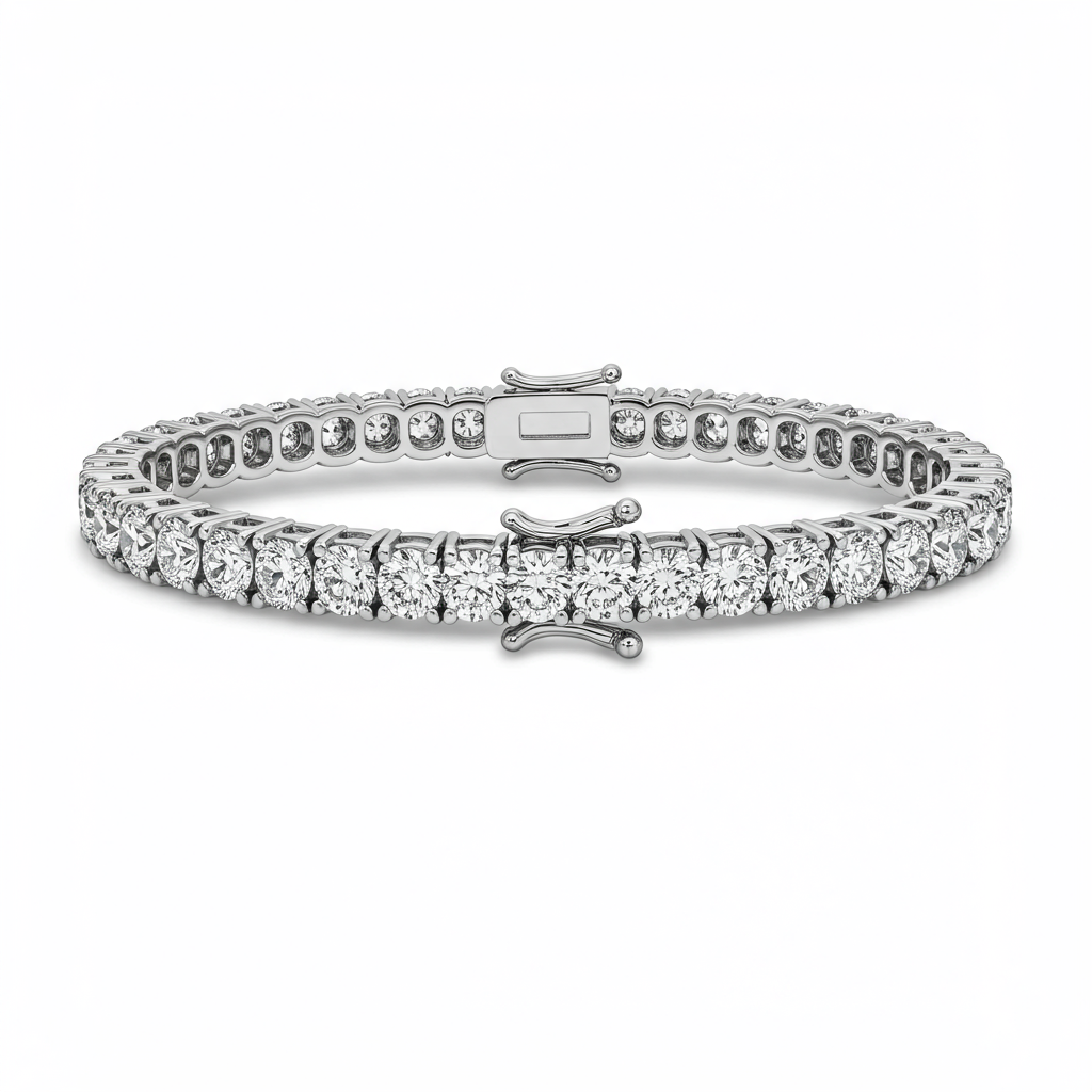 This exquisite diamond tennis bracelet defines enduring elegance and luxury. Featuring approximately 5.0 carats of perfectly matched VVS clarity round brilliant diamonds, each stone is meticulously set in a durable 18KT white gold four-prong articulation. The continuous line of sparkling diamonds wraps the wrist in brilliant light, secured by a sleek hidden clasp with double safety catches. This bracelet is an essential statement piece, transitioning effortlessly from daytime sophistication to evening glamour.