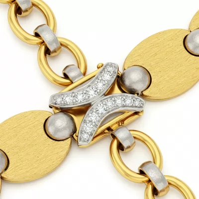 The 'Reseller Finds' link bracelet captures the coveted essence of vintage elegance, reimagined for the modern collector. Crafted in radiant 18KT yellow gold, this piece features intricate, alternating polished and brushed links, giving it a rich textural complexity. Its robust construction ensures durability, while the classic silhouette makes it a versatile staple for high-fashion layering or solo wear. This unique piece is accented with subtle VVS diamonds, adding a flash of brilliance to its heirloom-quality design. A true testament to timeless style, this bracelet promises to become an instant heirloom.
