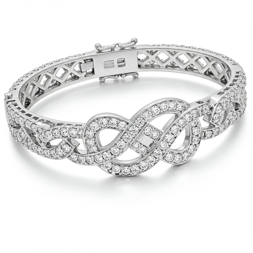 The 'how to tie a bracelet knot' piece captures everlasting connection through fluid lines and exceptional brilliance. Crafted in lustrous 18KT white gold, the central knot is meticulously detailed, symbolizing unbreakable bonds. A delicate array of VVS G-H diamonds illuminates the intricate curves, ensuring maximum sparkle from every angle. This exquisite bracelet serves as a sophisticated testament to enduring love and style, making it a timeless addition to any luxury collection.
