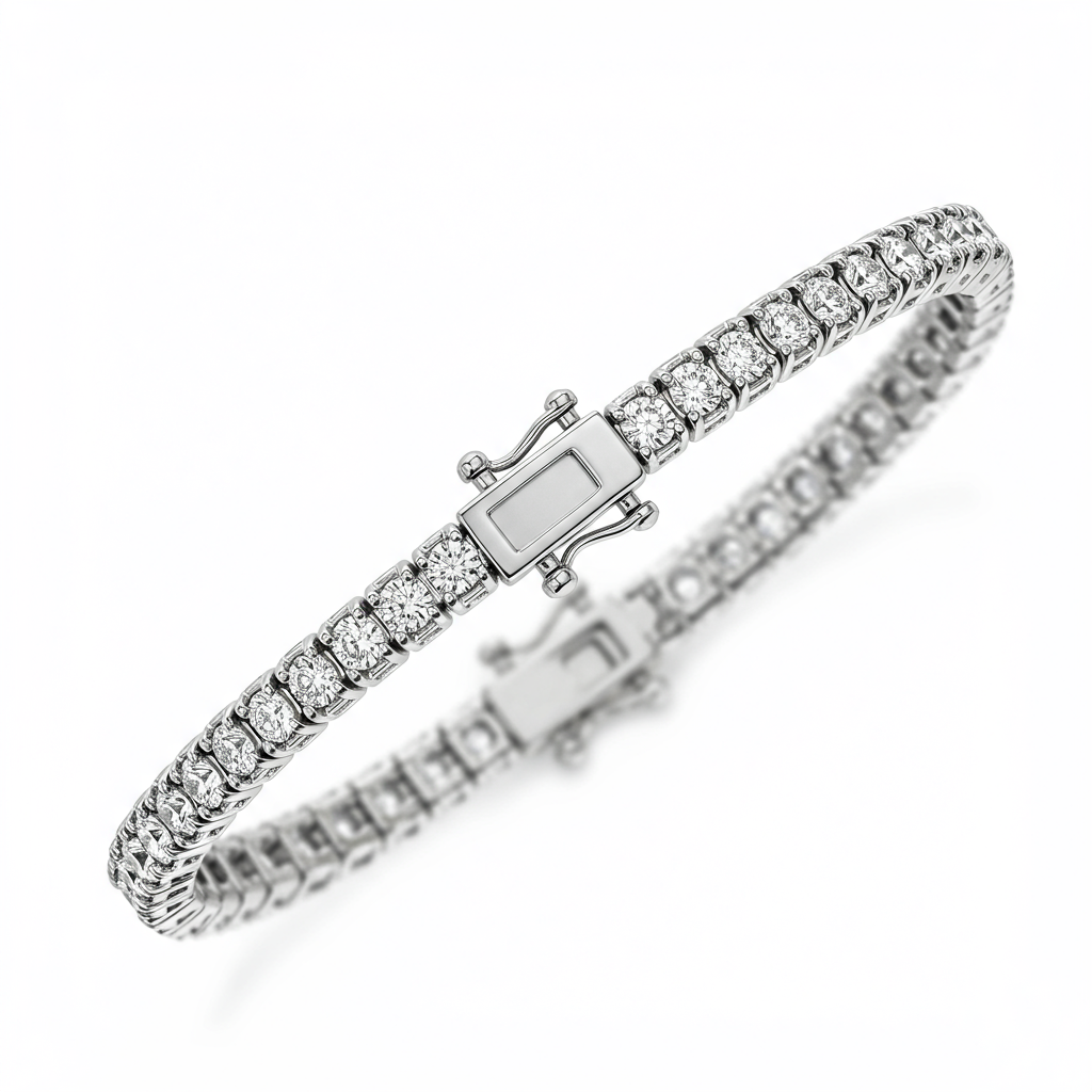The epitome of timeless elegance, this classic tennis bracelet features a continuous line of perfectly matched, brilliant round diamonds. Each stone is secured in a meticulous four-prong setting, maximizing light return and scintillation. Crafted in luxurious 18KT white gold, the fluid design ensures comfortable wear while maintaining an unbroken stream of sparkle. This essential piece offers sophisticated luxury suitable for both daily wear and grand occasions, securing with a concealed box clasp and safety latch.