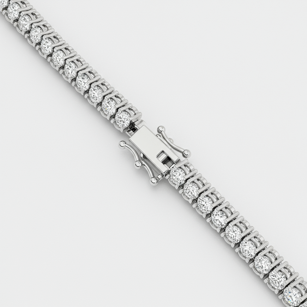 The 'women with bracelets' tennis bracelet embodies timeless sophistication and radiant elegance. Crafted meticulously in 18KT white gold, this piece features a continuous line of perfectly matched, brilliant round diamonds. Each stone is secured in a sleek, four-prong setting, ensuring maximum light dispersion and spectacular fire. This iconic bracelet is the ultimate statement of luxury, designed to cascade fluidly around the wrist for every occasion.