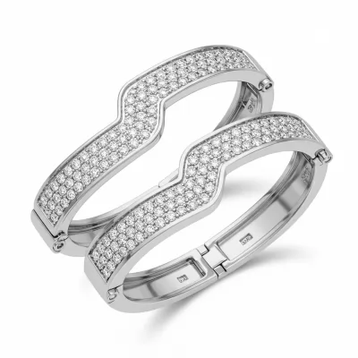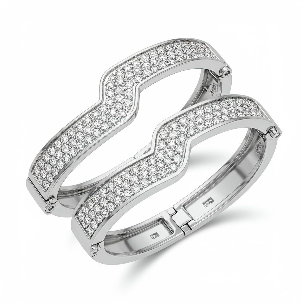 The Couple Bracelets collection embodies eternal commitment through elegant and synchronized design. Crafted in luminous 18KT white gold, the matching bangles feature sleek, contemporary profiles meticulously adorned with brilliant-cut VVS diamonds. Each piece symbolizes the unbreakable connection between two individuals, making this set the perfect heirloom for commemorating significant milestones. Their sophisticated simplicity ensures both comfort and timeless style for daily wear, reflecting shared devotion.